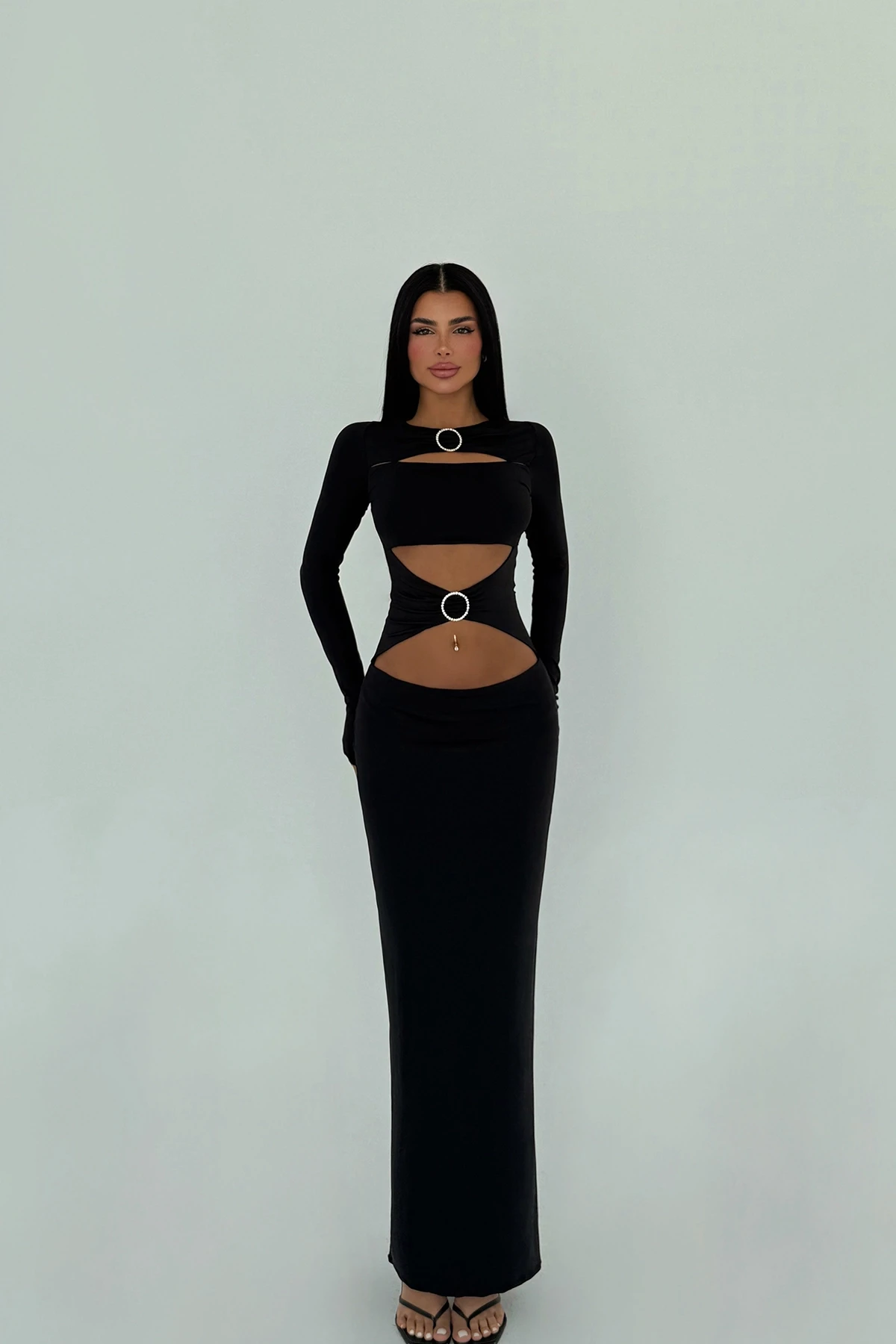 Black Ring Detail Long Dress