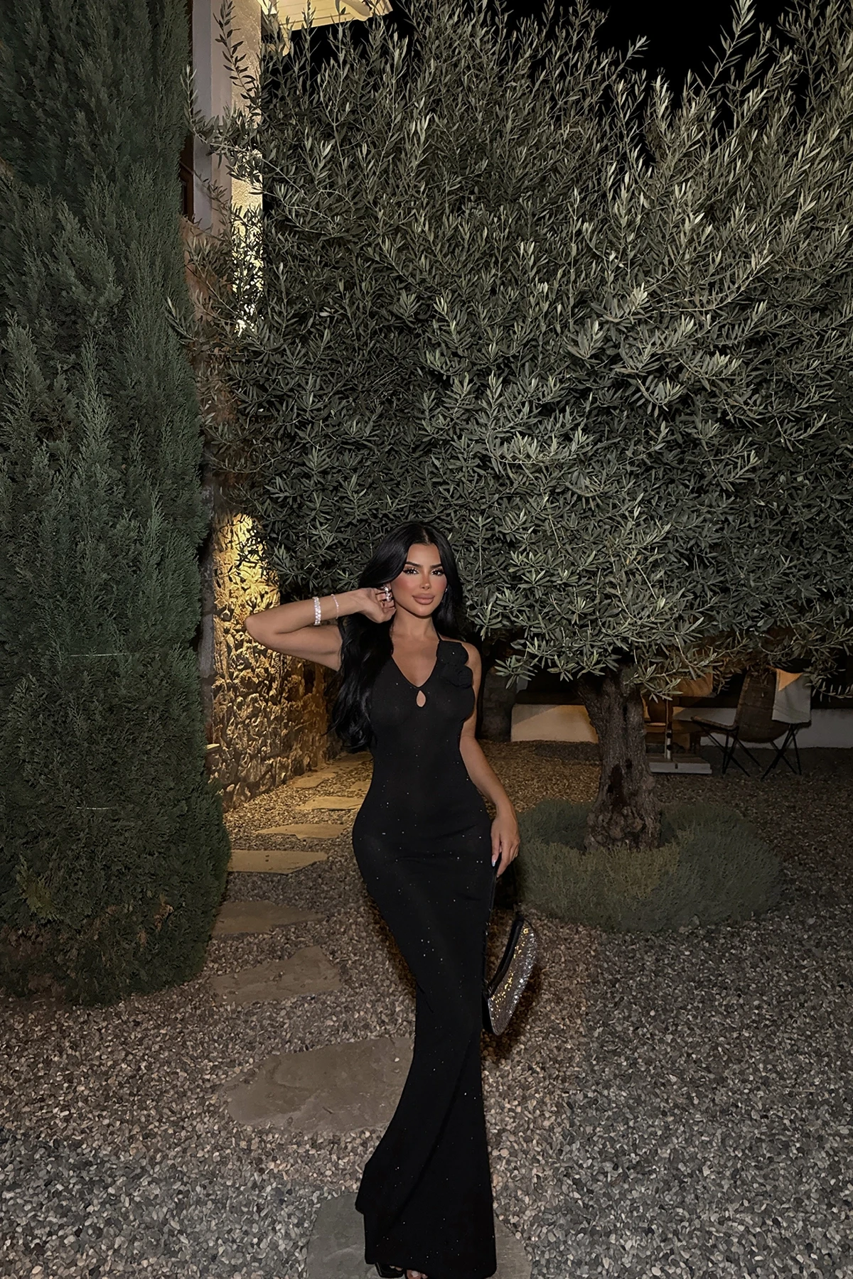Black Rose Detailed Dress Made from Fukuro fabric Size S is used in the image Dress Length:134:cm Bust:36cm Waist:32cm Model's Measurements: Height: 160 Weight: 50 Chest: 80 Waist: 62 Hips: 94