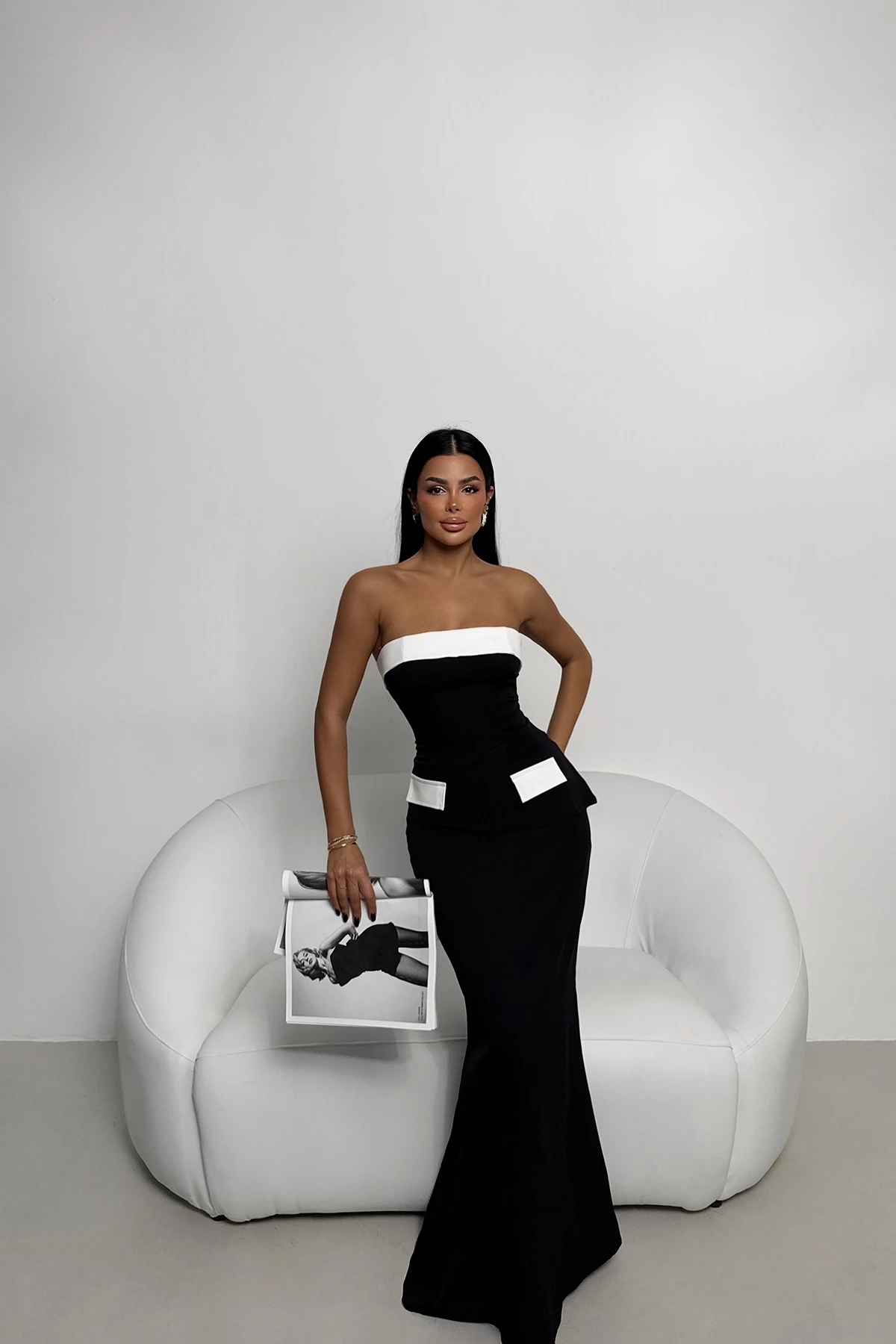 Black Skirt Suit Size XS is used in the image. Made from Begonia Fabric. Top Length: 35 Cm Bust: 41 Cm Bottom Length: 101 Cm Waist: 36 Cm Model Measurements Height 158 Weight 52 Chest 80 Waist 62 Hip 93