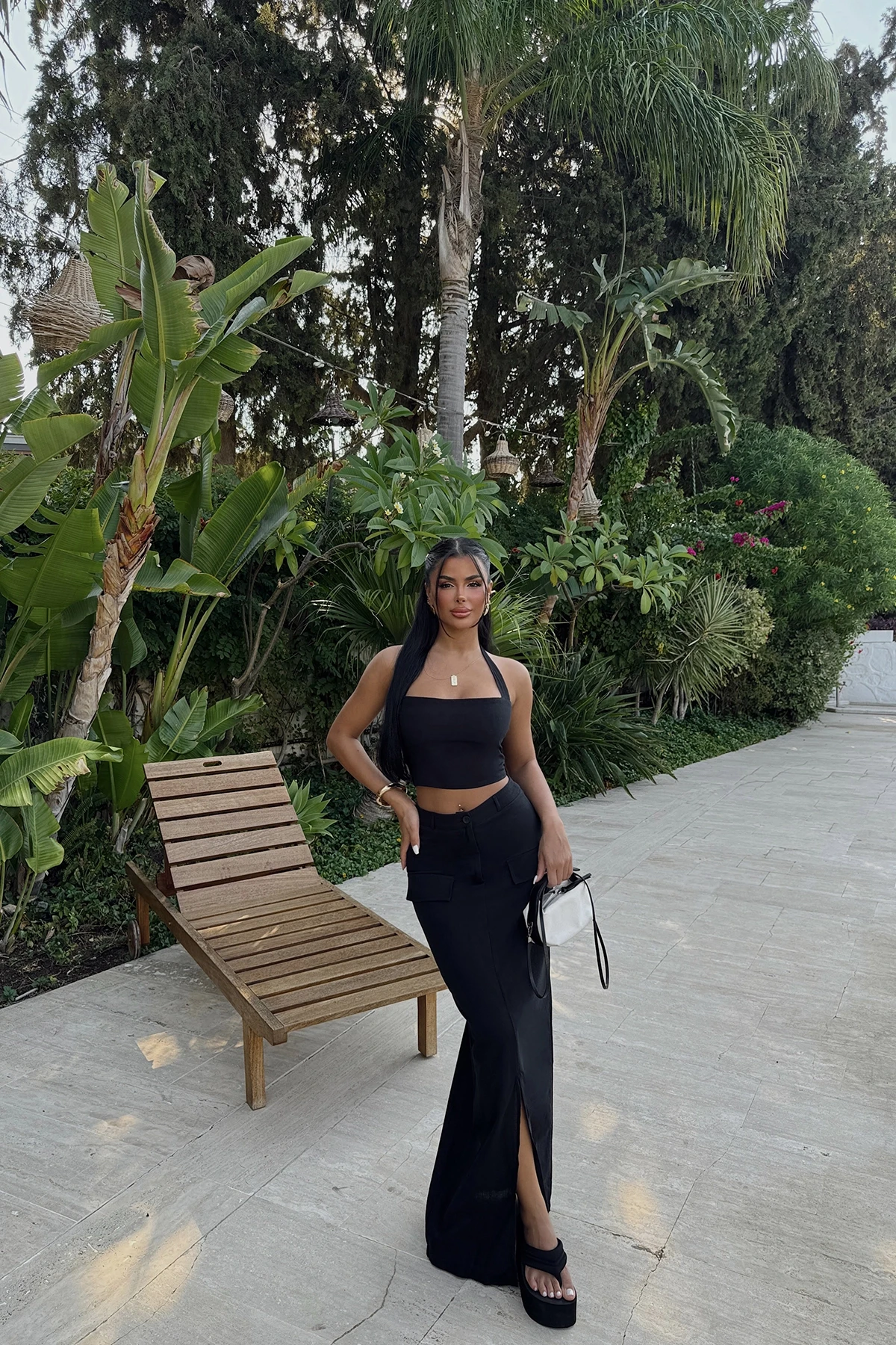 Black Skirt Suit Size XS is used in the image. Made from linen fabric. Suit top length 34 cm, Chest 31 cm, Bottom length 107 cm, Waist 36 cm Model Measurements Height 158 Weight 52 Chest 80 Waist 62 Hip 93