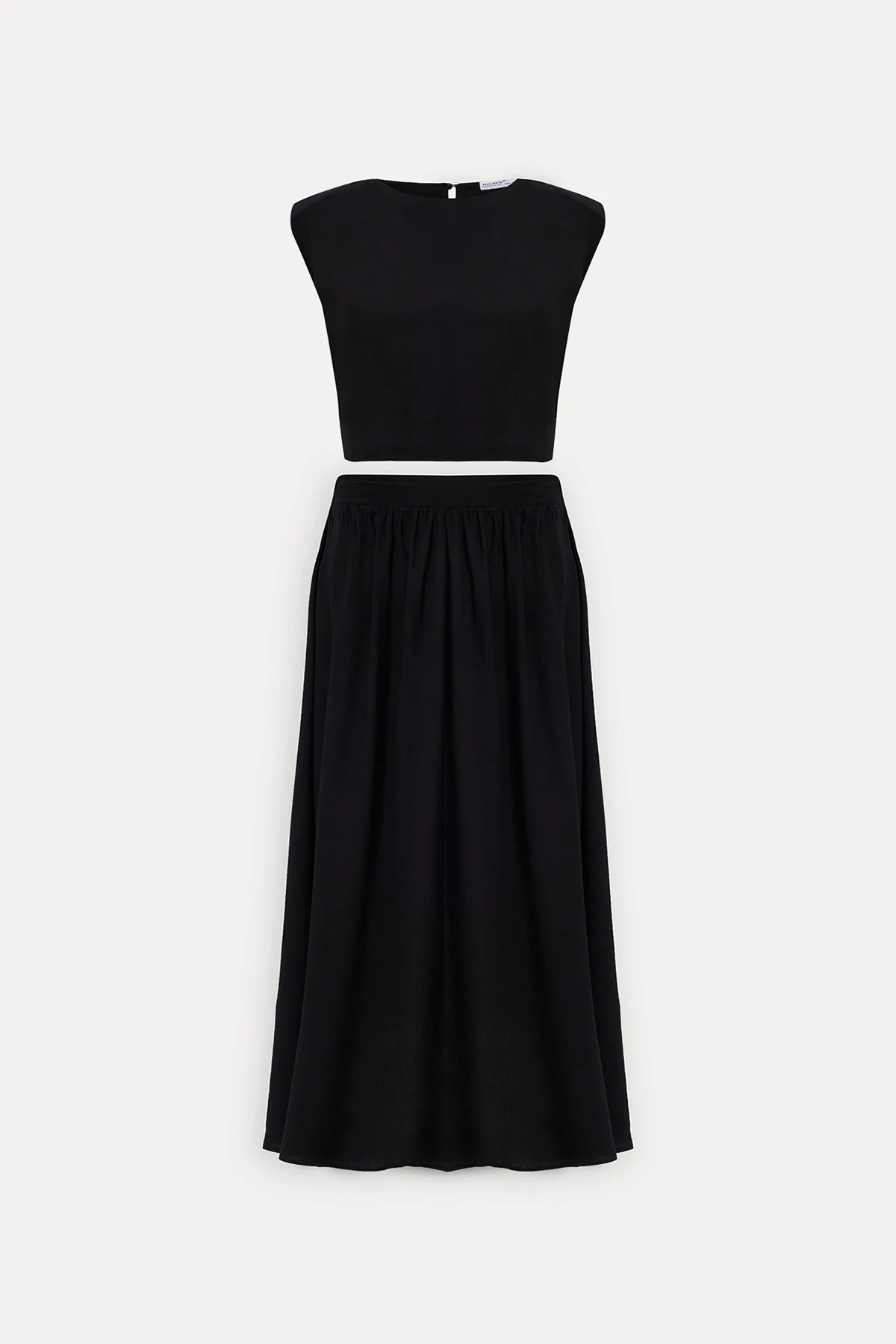 Black Skirt Suit XS size is used in the image. Made of viscose fabric. Suit upper length 51 cm, Chest 39 cm, Bottom length 84 cm, Waist 25 Model Measurements Height 158 Weight 52 Chest 80 Waist 62 Hip 93