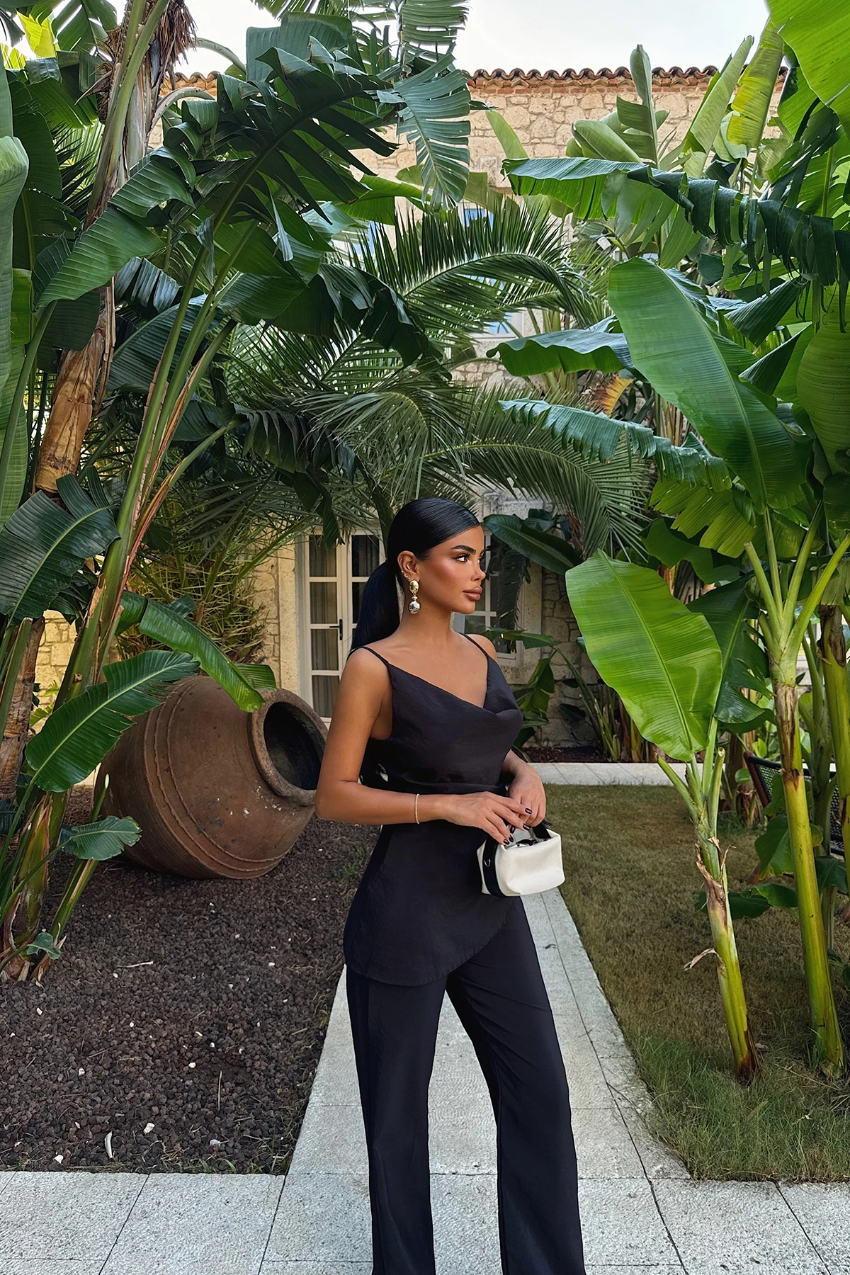 Black Suspender Set Made of Cupra fabric S size is used in the image Suit top length: 64cm, Chest 43cm, Bottom length 107cm, Waist 36cm Model Measurements Height: 160 Weight: 50 Chest: 80 Waist: 62 Hip: 94