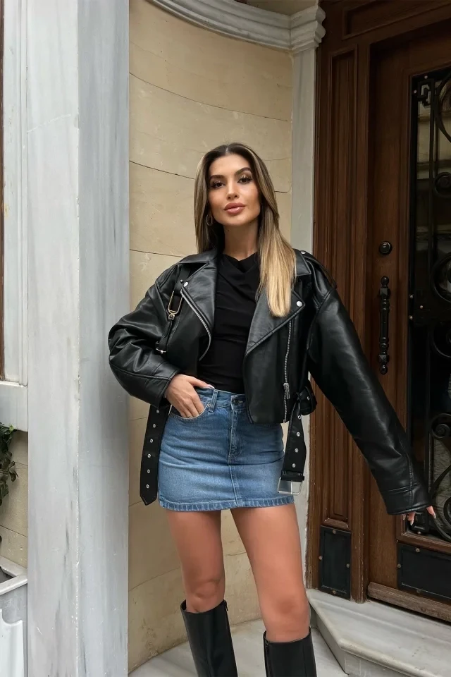 Blue Denim Skirt Made from denim fabric. Size S is used in the image. Skirt length is 35 cm, waist is 35 cm. Model Measurements: Height: 171 Weight: 55 Chest: 85 Waist: 65 Hip: 105
