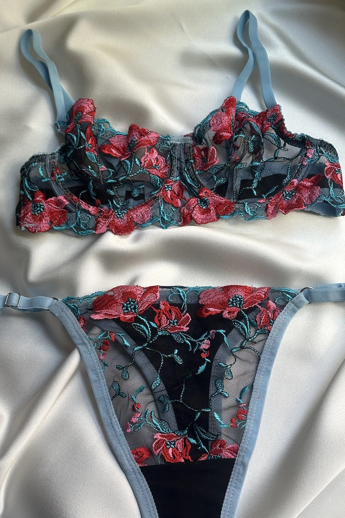 Blue Flower Detail Underwear Our products will be sent to you with unknown content. Important Reminder: For hygiene reasons, underwear products cannot be exchanged or returned. *HANDWASH ONLY*