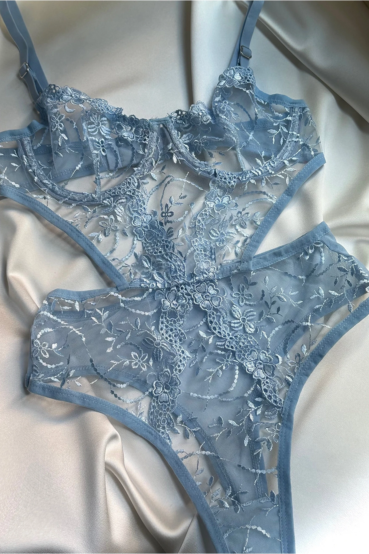 Blue Lace Detail Bodysuit Our products will be sent to you with unknown content. Important Reminder: For hygiene reasons, underwear products cannot be exchanged or returned. *HANDWASH ONLY*
