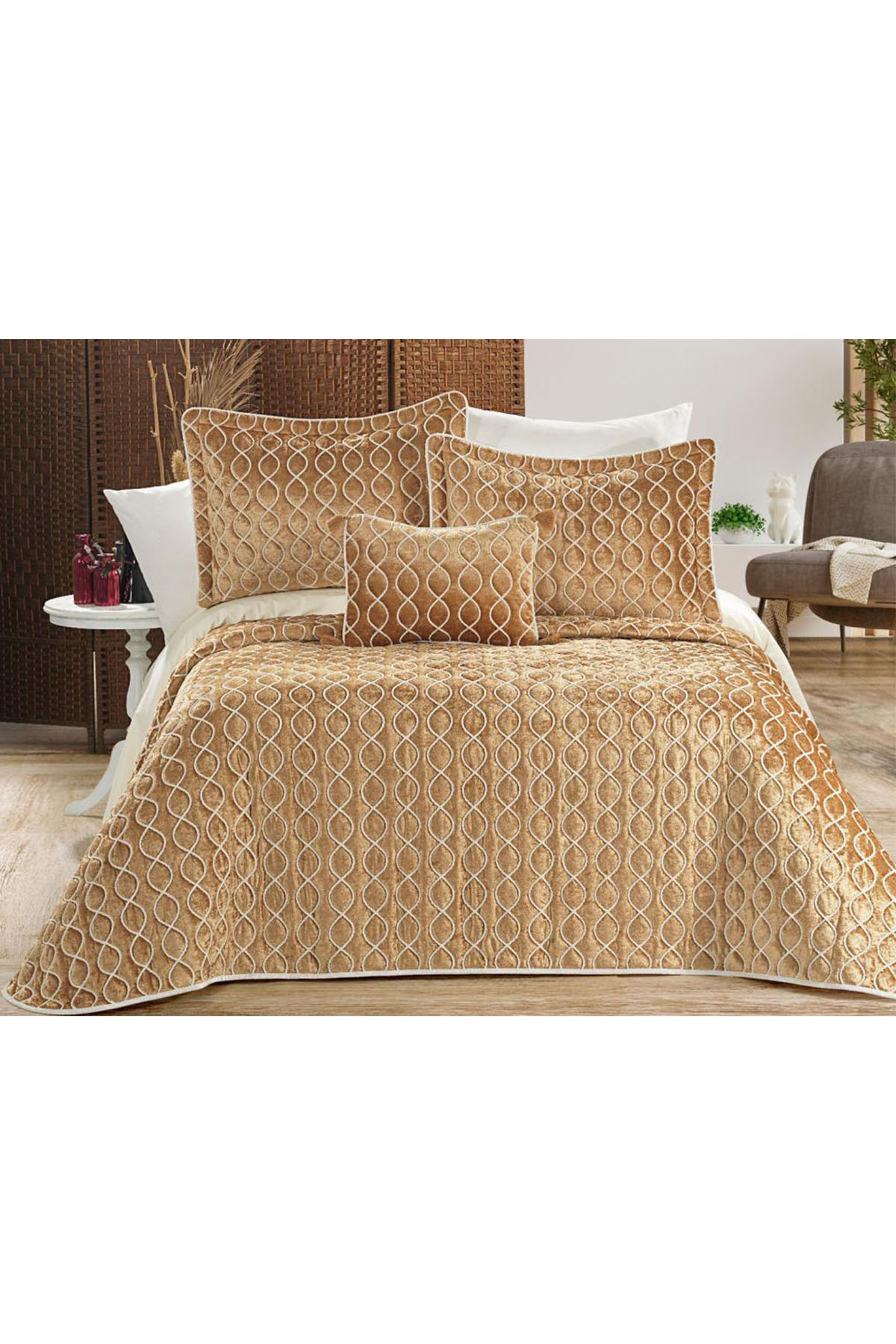 Brillance Çift Kişilik Yatak Örtüsü Gold