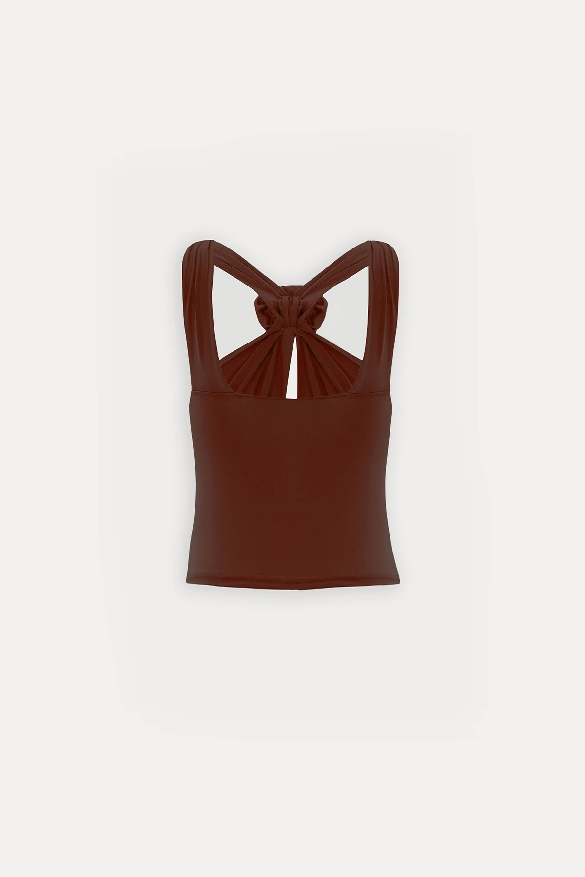 Brown Rose Detail Crop Top Made of Sandy fabric. S size is used in the image. Crop length is 46 cm, Chest is 27 cm. Model Measurements Height: 160 Weight: 50 Chest: 80 Waist: 62 Hip: 94