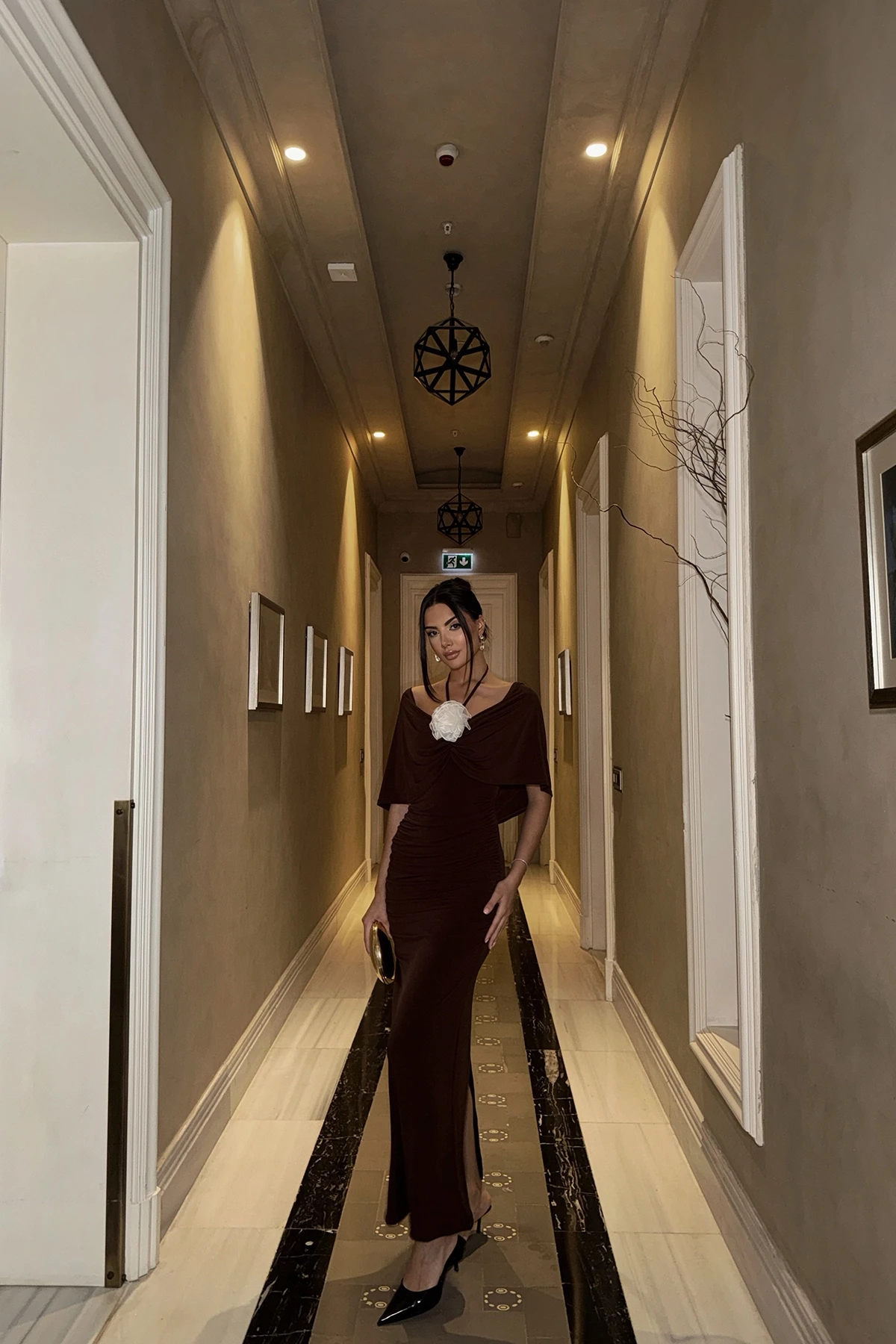 Brown Rose Detailed Skirt Suit Size XS is used in the image. Made from Sandy Fabric. Height: 146 Cm Waist: 29 Cm Bust: 32 Cm Model Measurements Height 158 Weight 52 Chest 80 Waist 62 Hip 93