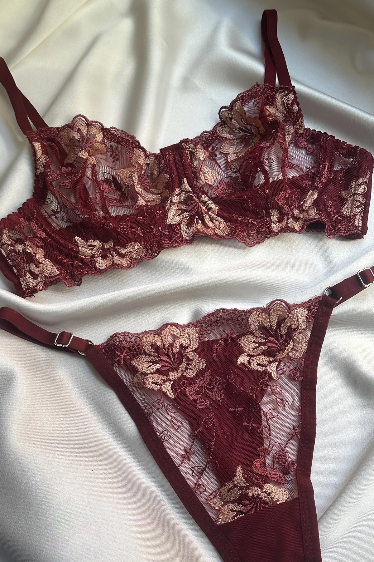 Burgundy Floral Detailed Underwear Our products will be sent to you with unknown content. Important Reminder: For hygiene reasons, underwear products cannot be exchanged or returned. *HANDWASH ONLY*