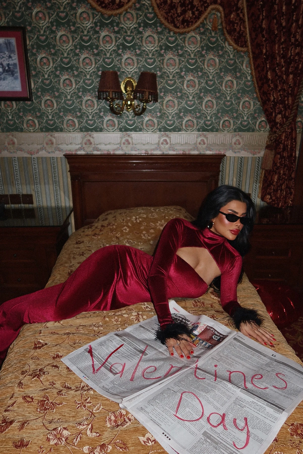 Burgundy Patrizio Otriş Detail Velvet Dress