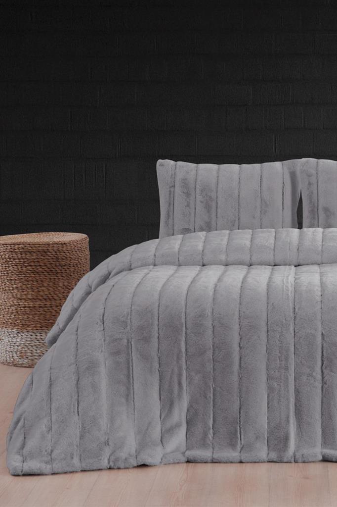 Buzina Pelüş Çift Kişilik Yatak Örtüsü Gri