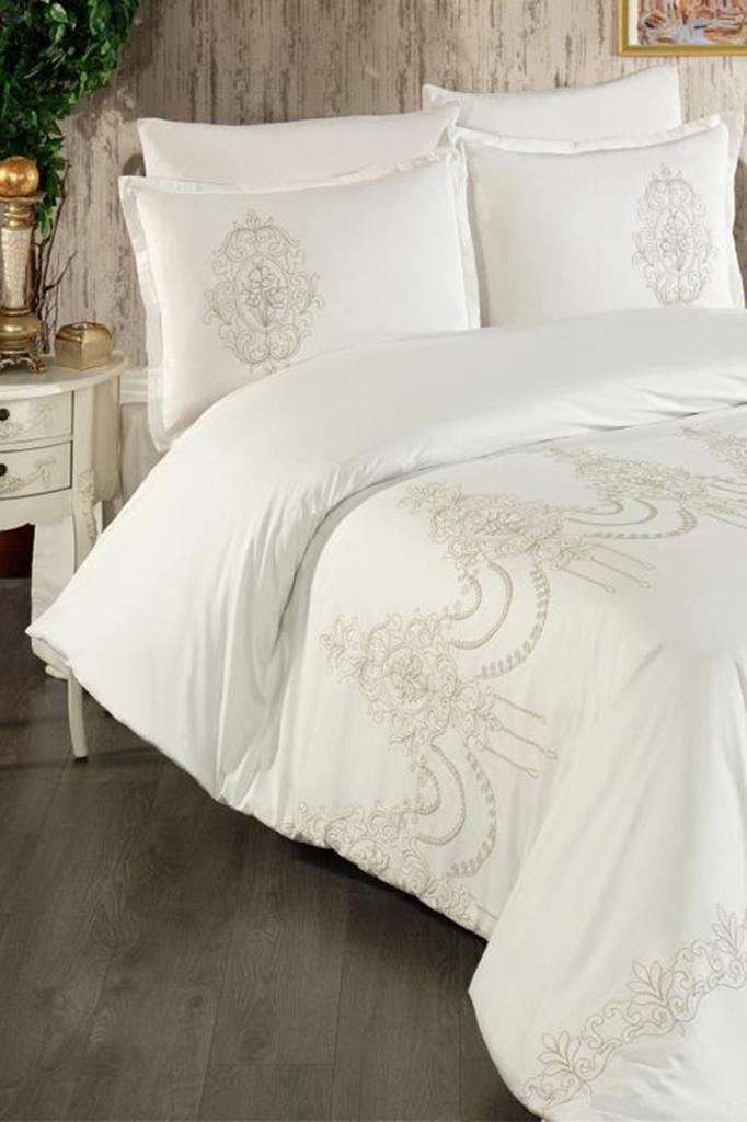 Calina Nakışlı %100 Pamuk Çift Kişilik Nevresim Takımı Cappucino