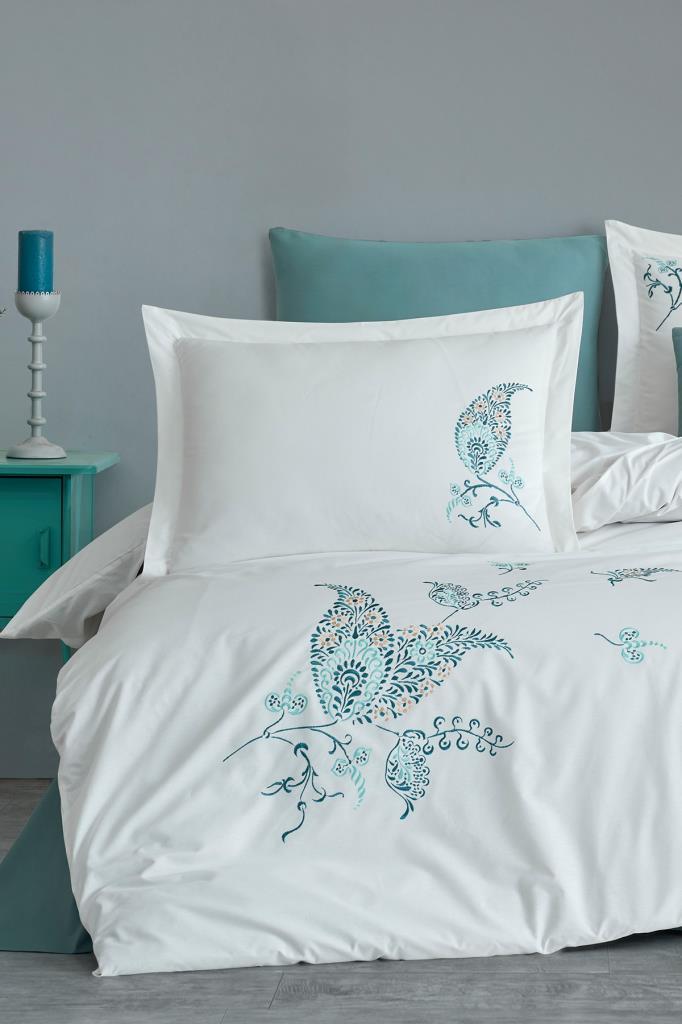 Nakışlı Poplin Nevresim Takımı Nevresim : 200x220cm Çarşaf : 240x260cm Yastık Kılıfı : 50x70 cm / 2 adet Nakışlı Volanlı Yastık Kılıfı: 50x70cm / 2 adet %100 Pamuk Kumaştan Üretilmiştir. YIKAMA TALİMATI -Makinada veya elde yıkayabilirsiniz max 40 derecede yıkayınız. -İlk yıkamayı ılık su ile ters çevirerek yıkayınız.her zaman ters yıkamanız ürün ömrünü uzatır. -Çamaşır suyu ile leke sökücü kimyasallar kullanmayınız. -Yıkama esnasında koyu renkleri mümkün olduğunca ayrı tutunuz. -Ilık ütü ile ütüleyiniz. -Islak bekletmeyiniz. -Kurutma makinasında kurutulabilir.