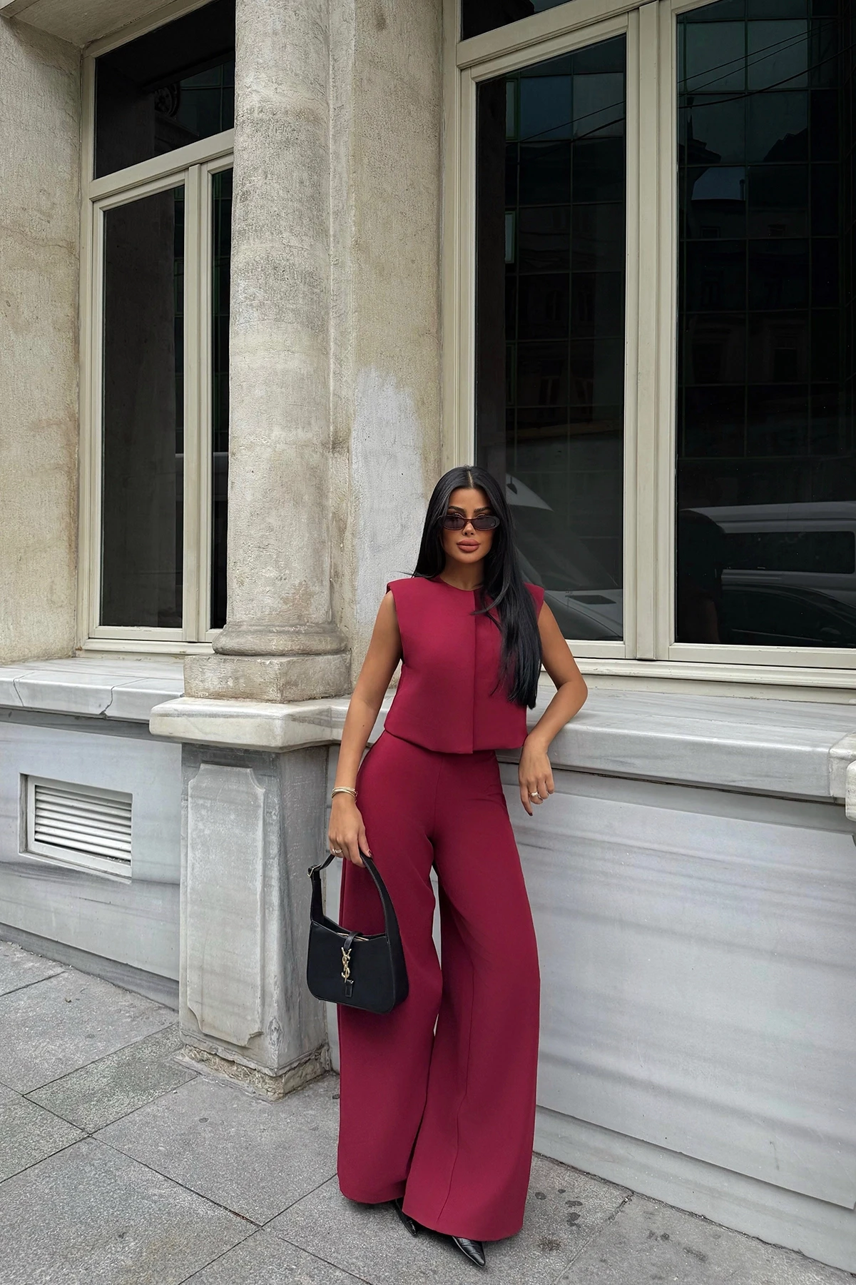 Cherry Rotten Trousers Set Size XS is used in the image. Top Length: 45 Cm Bust: 48 Cm Bottom Length: 100 Cm Waist: 40 Cm Model Measurements Height 158 Weight 52 Chest 80 Waist 62 Hip 93