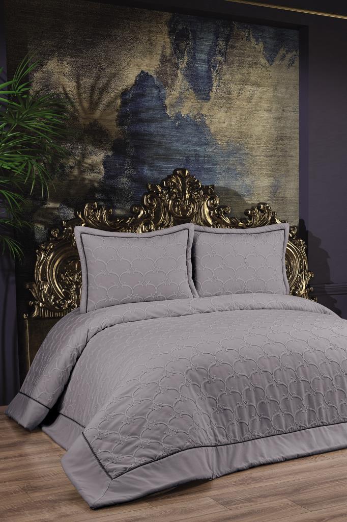 Daye Dolgulu Şönil Çift Kişilik Yatak Örtüsü Gri