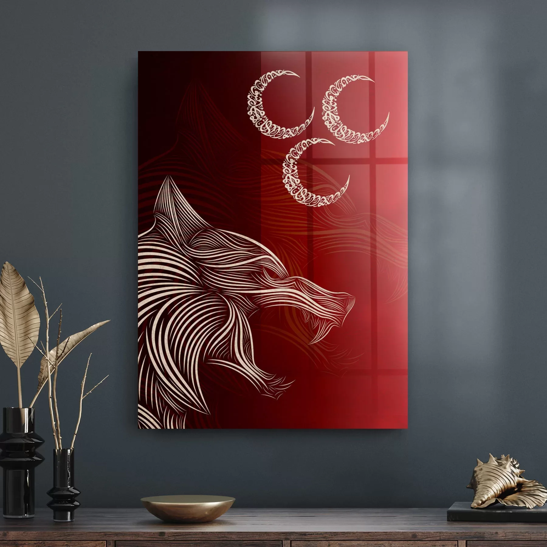 Decovetro Cam Tablo Hilal ve Kurt 50x70 cm