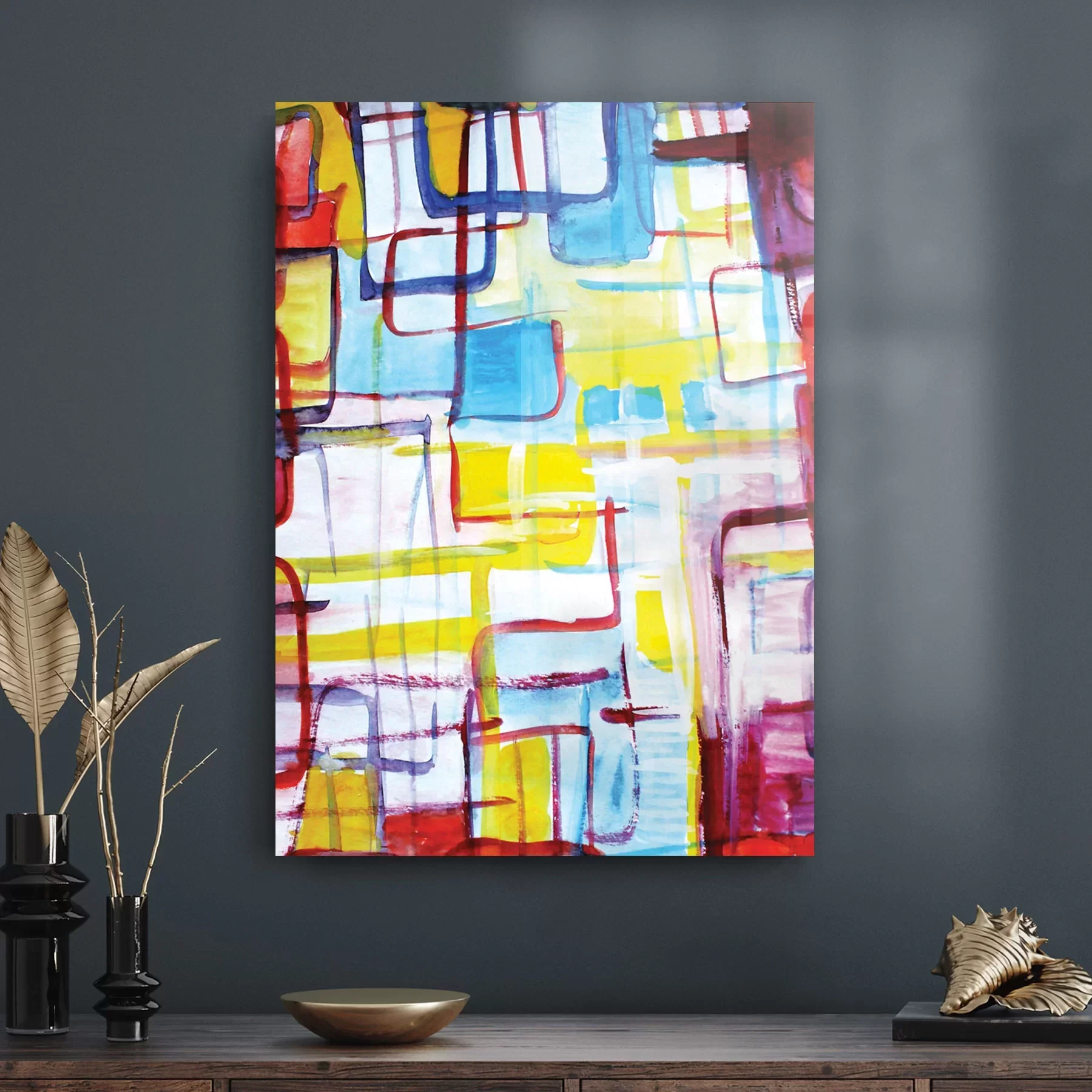 Decovetro Cam Tablo Sulu Boya Soyut 50x70 cm