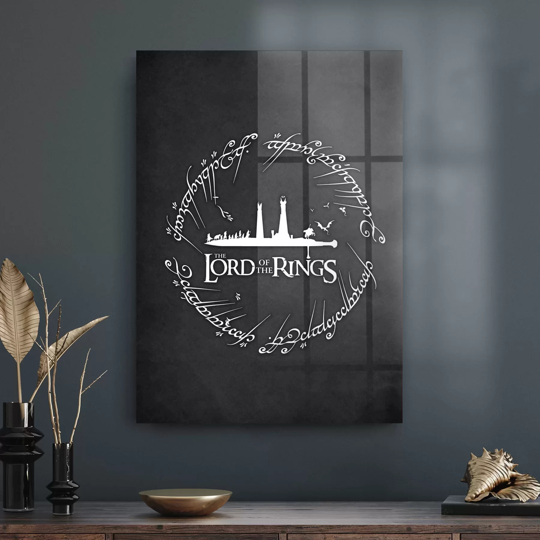 Decovetro Cam Tablo Yazılı Gri Yüzüklerin Efendisi 50x70 cm