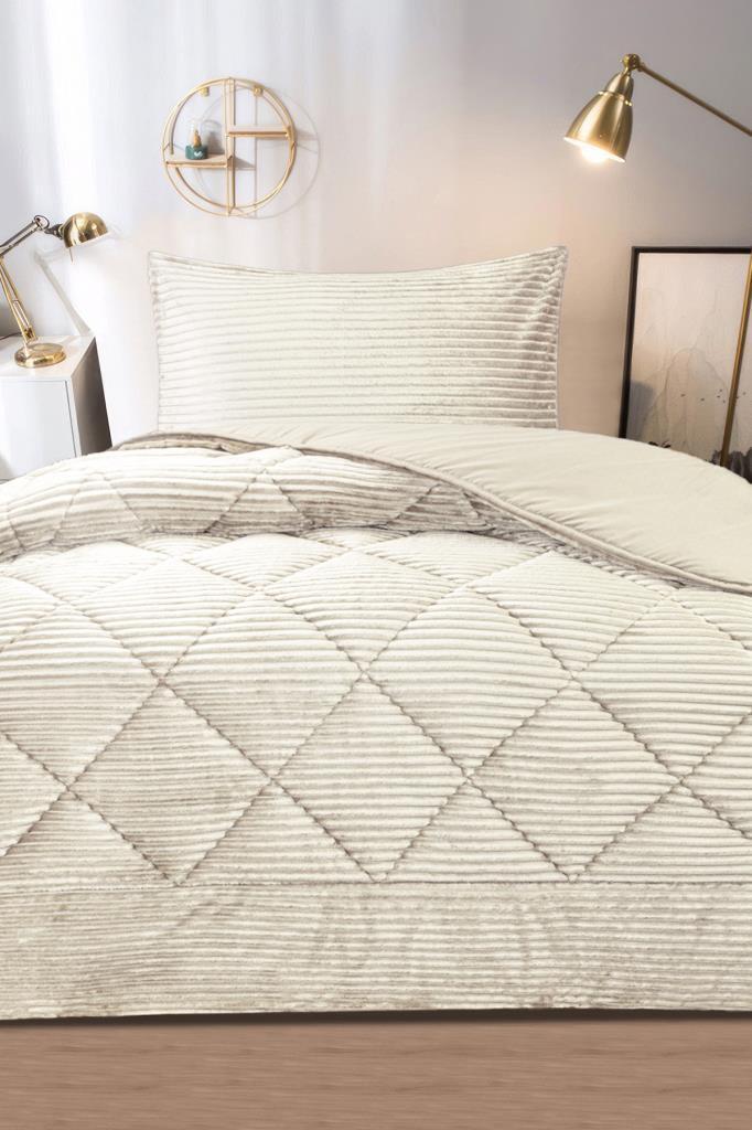 Derya Tek Kişilik Pelüş Yatak Örtüsü Krem
