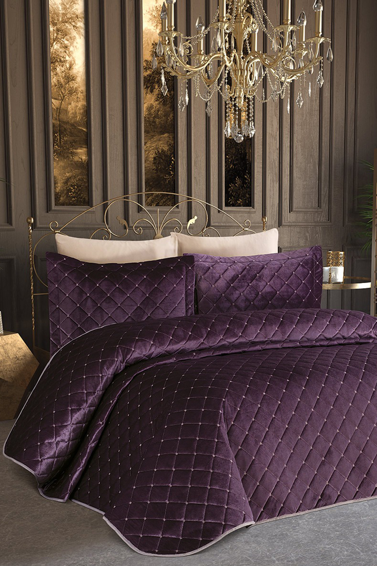 Dessert Kadife Çift Kişilik Yatak Örtüsü Mürdüm