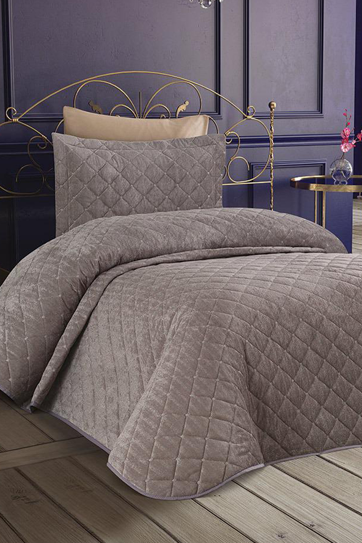 Dessert Kadife Tek Kişilik Yatak Örtüsü Gri
