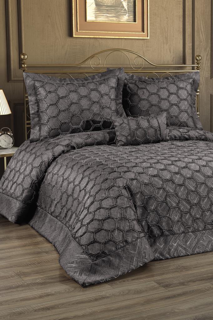 Deste Dolgulu Pamuklu Çift Kişilik Yatak Örtüsü Gri
