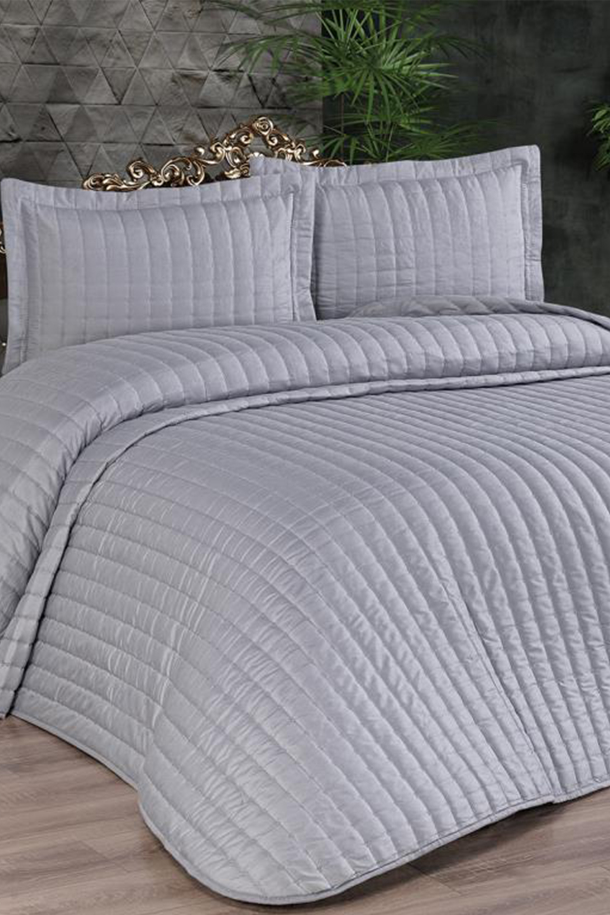 Dublin Çift Kişilik Kapitoneli Yatak Örtüsü Gri