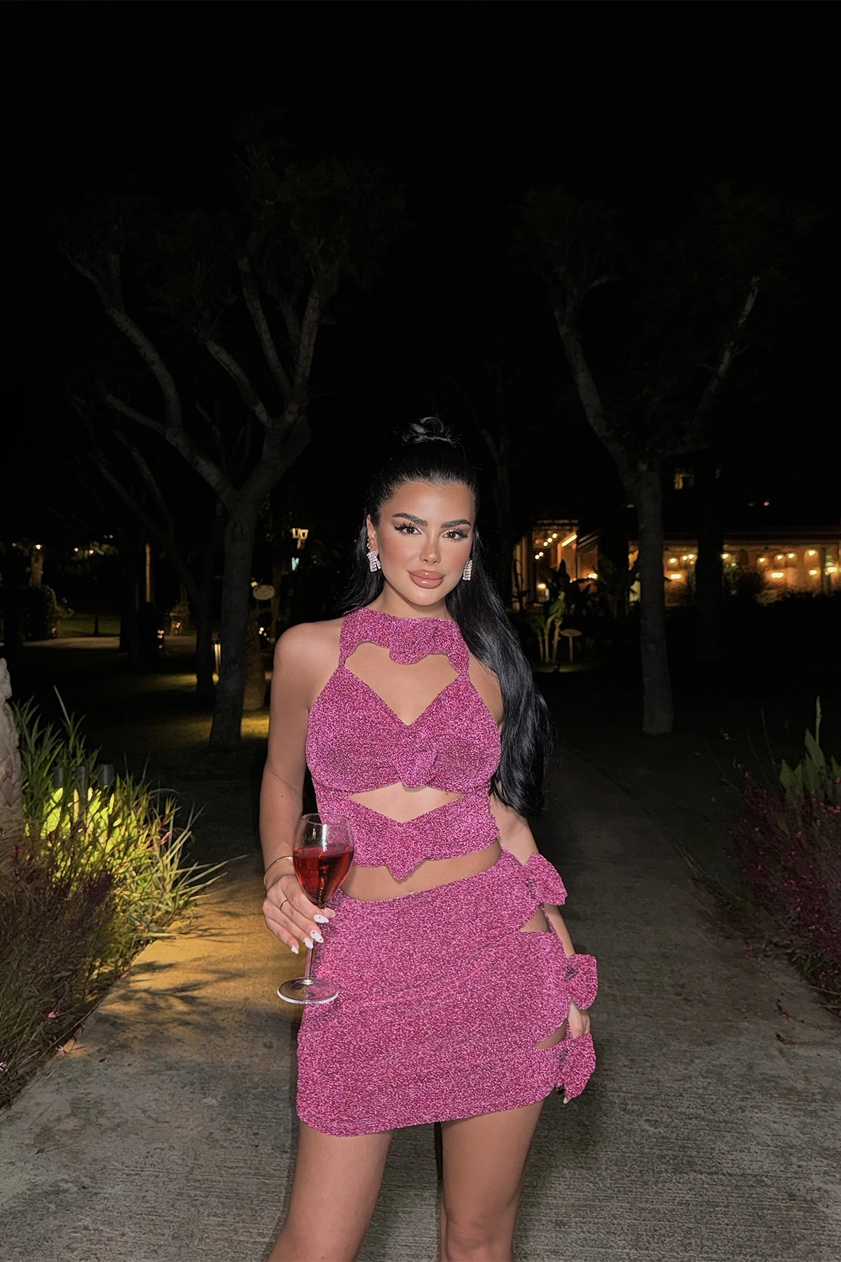 Dusty Rose Agnes Glitter Set Made from Fukuro fabric. Size S is used in the image Suit Top Length 37 cm, Chest 33 cm, Bottom Length 38 cm, Waist 25 cm Model Measurements: Height: 160 Weight: 50 Chest: 80 Waist: 62 Hip: 94