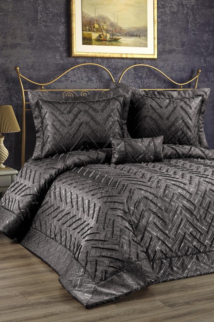 Efsane Dolgulu Pamuklu Çift Kişilik Yatak Örtüsü Antrasit