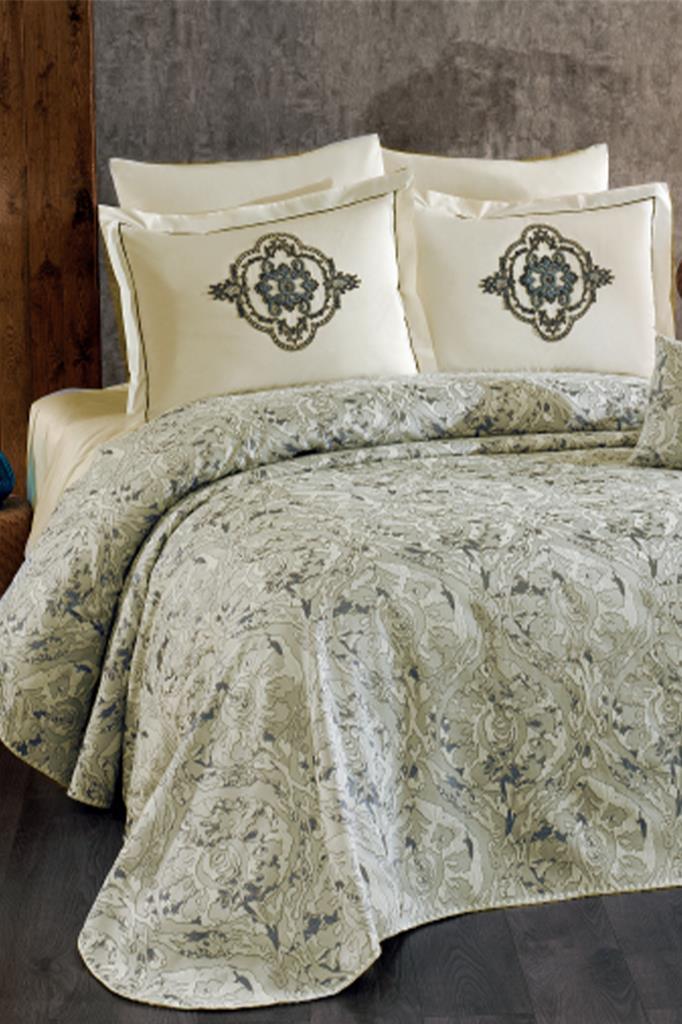 Elit 7 Parça Şönil Pike Takımı Krem - Gri