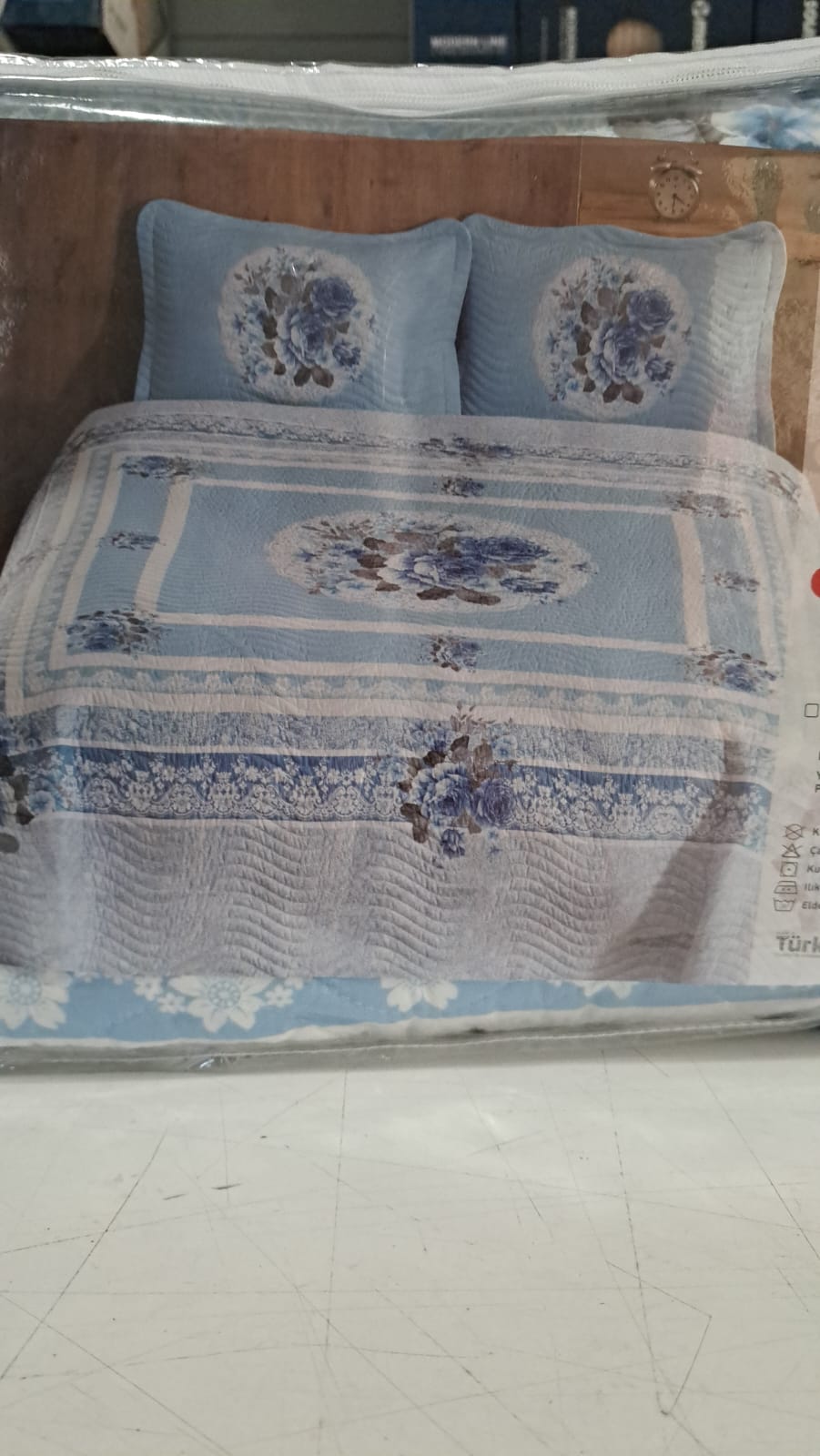 Çift Kişilik Pamuklu Baskılı Yatak Örtüsü Marka: Çeyiz Diyarı Yatak Örtüsü : 240x250 cm 1 adet Yastık : 50x70 cm 2 adet Ürünümüz kapitoneli ve elyaf dolguludur.Pamuklu kumaştan üretilmiştir. Yatak Odalarınıza renk katacak günlük kullanıma uygun sermesi ve toplaması kolay bir üründür. YIKAMA TALİMATI -Makinada veya elde yıkayabilirsiniz max 30 derecede yıkayınız. -Çamaşır suyu ile leke sökücü kimyasallar kullanmayınız. -Yıkama esnasında koyu renkleri mümkün olduğunca ayrı tutunuz. -Ilık ütü ile ütüleyiniz. -Islak bekletmeyiniz. -Kurutma makinasında kurutulabilir.