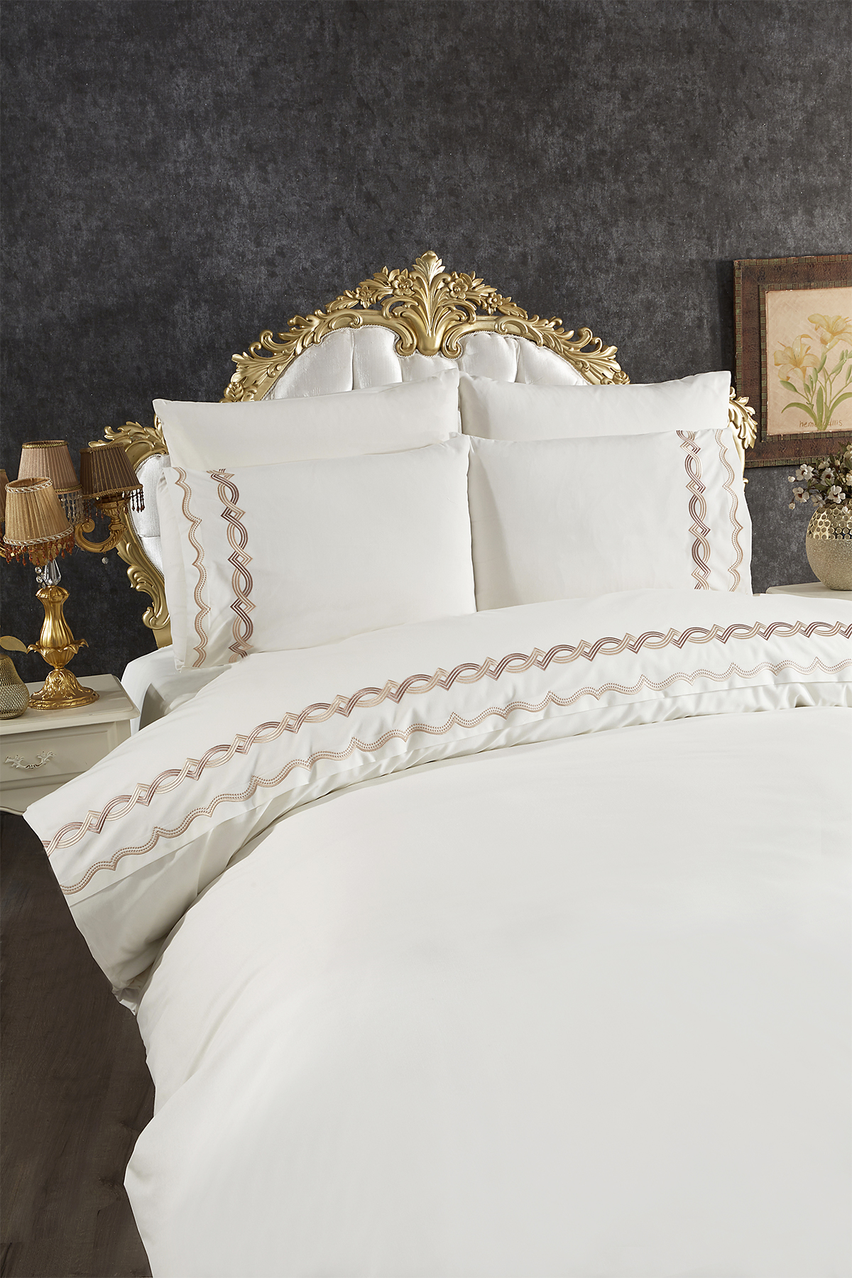 Flexi Nakışlı 6 Parça Nevresim Takımı Krem