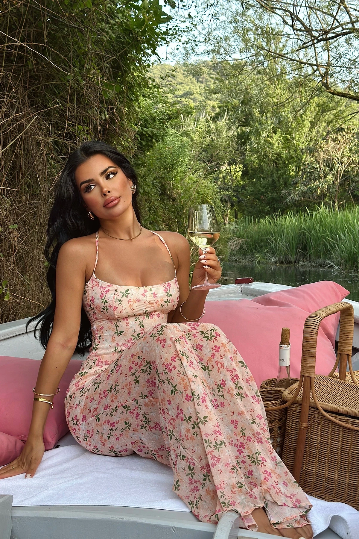 Floral Strap Dress Made from chiffon fabric Size S is used in the image   Dress Length: 149 Cm Bust: 37 Cm Waist: 30 Cm Model Measurements: Height: 160 Weight: 50 Chest: 80 Waist: 62 Hip: 94