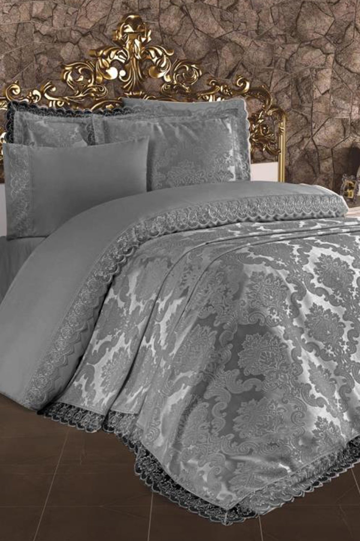 Fransız Dantelli Lalezar Gelin Seti 7 Parça Gri