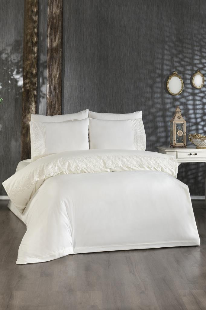Fransız Dantelli Mahinur Çeyizlik Nevresim Takımı Krem