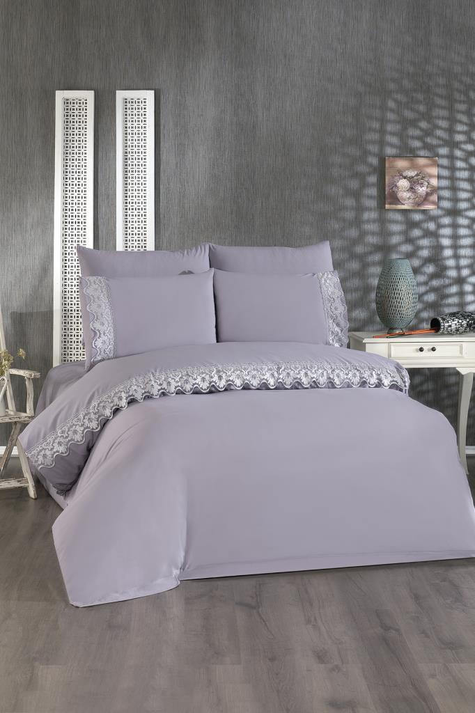 Fransız Dantelli Neriman Çeyizlik Nevresim Takımı Gri