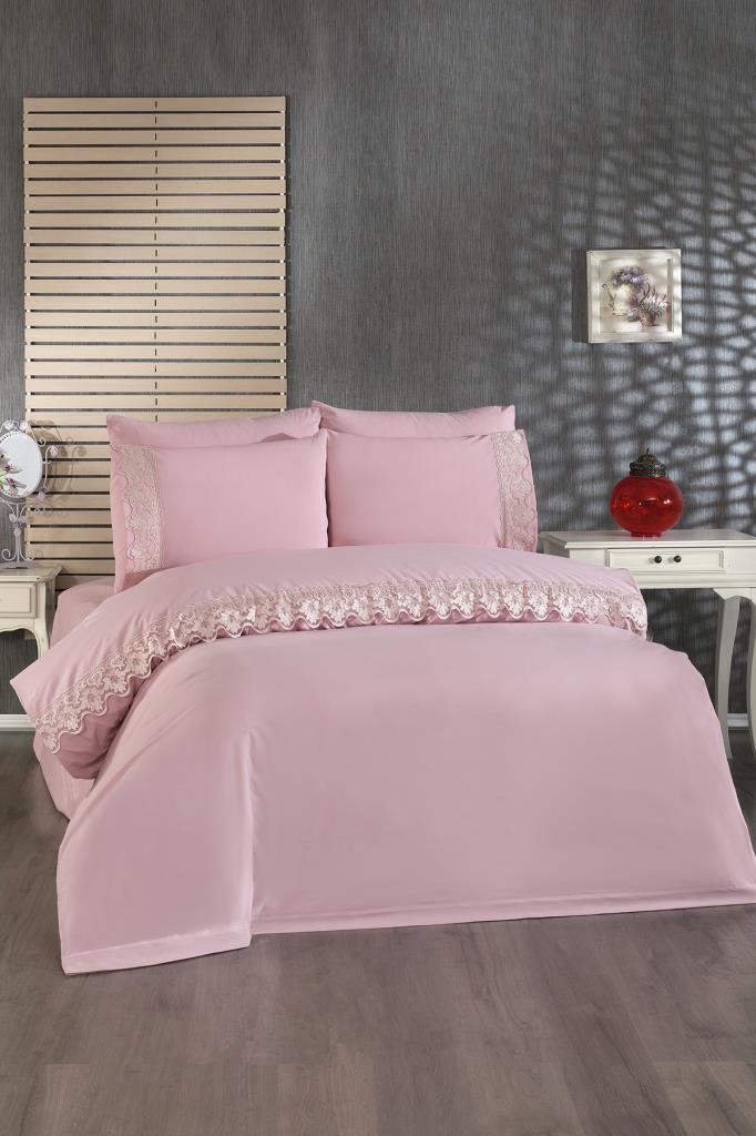 Fransız Dantelli Neriman Çeyizlik Nevresim Takımı Pudra