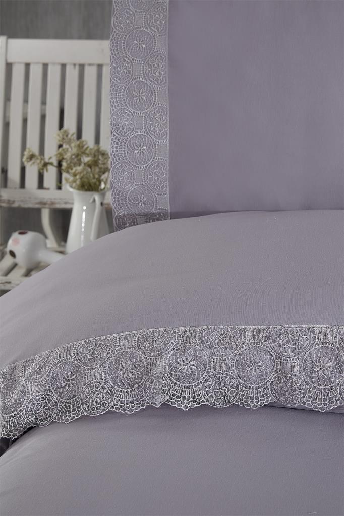 Fransız Dantelli Perihan Çeyizlik Nevresim Takımı Gri
