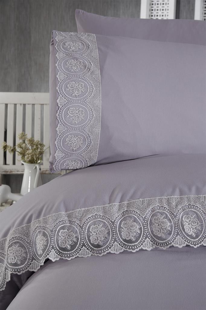 Fransız Dantelli Seda Çeyizlik Nevresim Takımı Gri