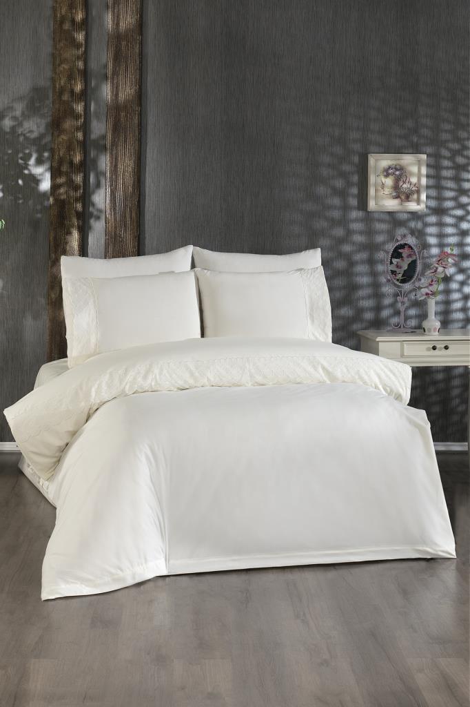 Fransız Dantelli Serap Çeyizlik Nevresim Takımı Krem