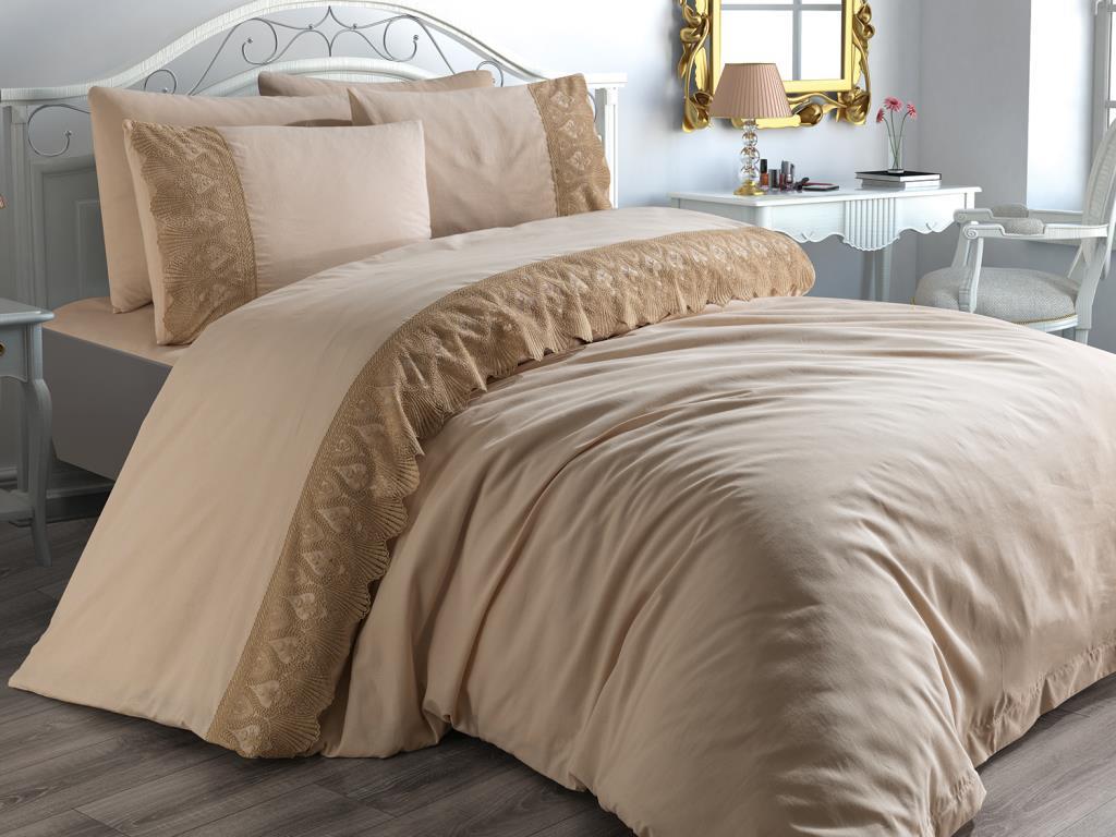 Fransız Dantelli Vase Çeyizlik Nevresim Takımı Cappucino
