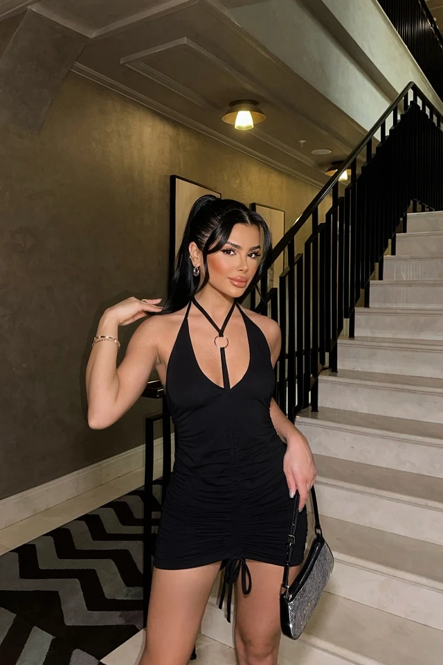 Gathered Front Ring Detail Dress It is made of combed cotton fabric. Size S is used in the image Dress length is 77 cm, chest is 25 cm. Model Measurements: Height: 160 Weight: 50 Chest: 80 Waist: 62 Hip: 94