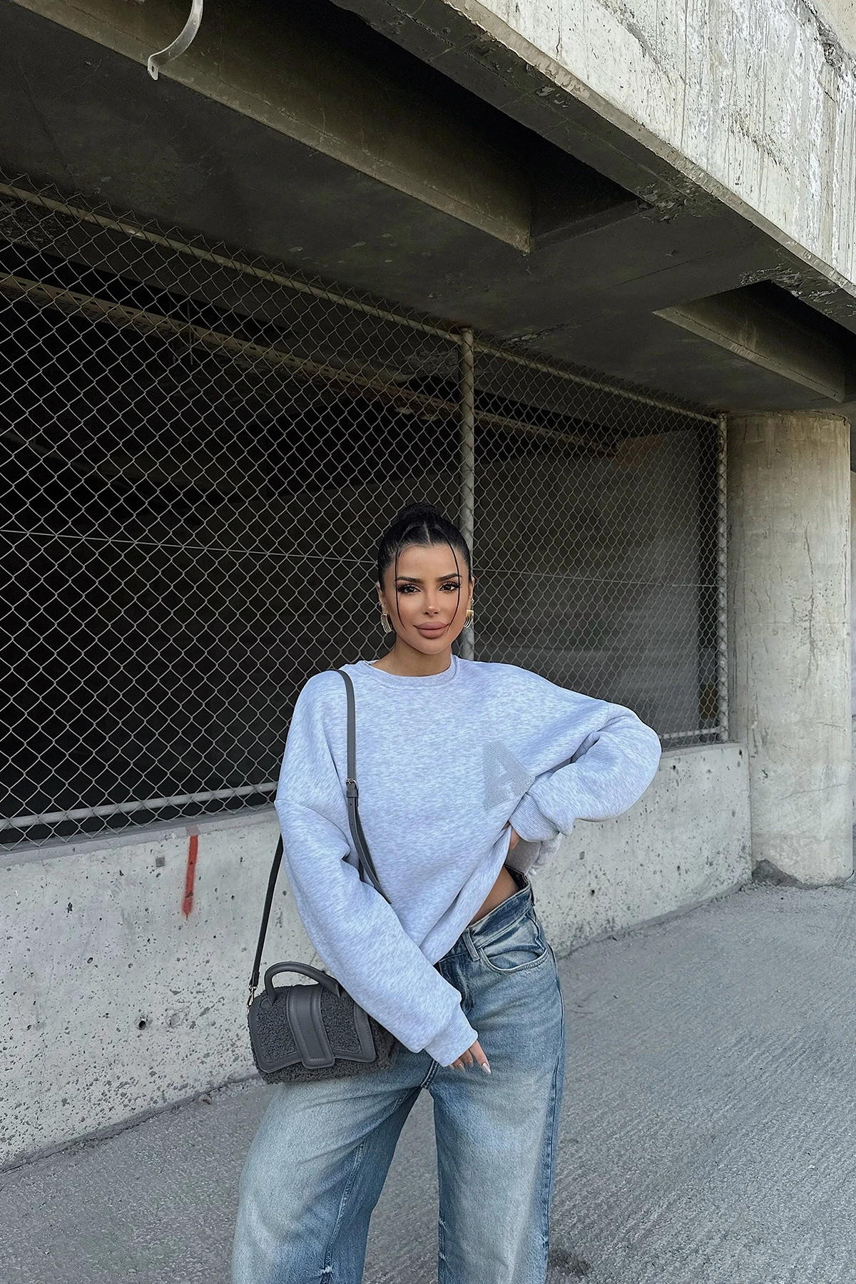 Gray A Embroidered Sweat Made from Three Thread Fabric Size S is used in the image Height:67cm Bust:60cm Model's Measurements: Height: 160 Weight: 50 Chest: 80 Waist: 62 Hip: 94