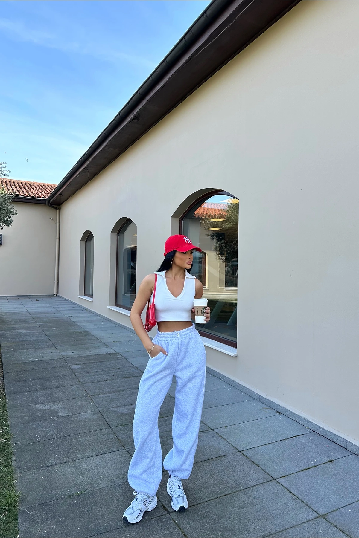 Gray Basic Sweatpants It is made of Three Thread Raised fabric. Tracksuit length is 102 cm, waist is 34 cm. Size S is used in the image. Model Measurements: Height: 160 Weight: 50 Chest: 80 Waist: 62 Hip: 94