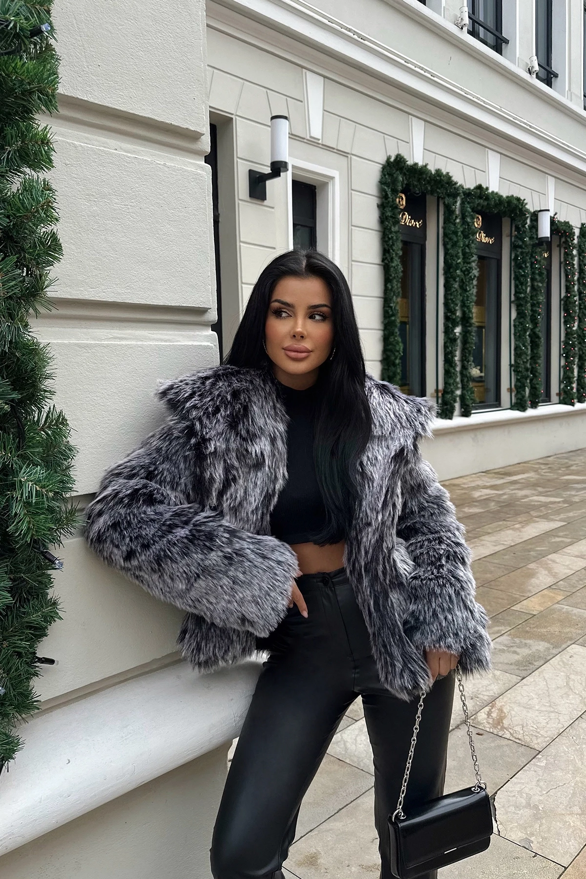 Gray Plush Jacket Image size S is used Height: 59 cm Bust: 50 cm Model Measurements: Height: 160 Weight: 50 Chest: 80 Waist: 62 Hip: 94 *IT IS RECOMMENDED TO BE DRY CLEANED.