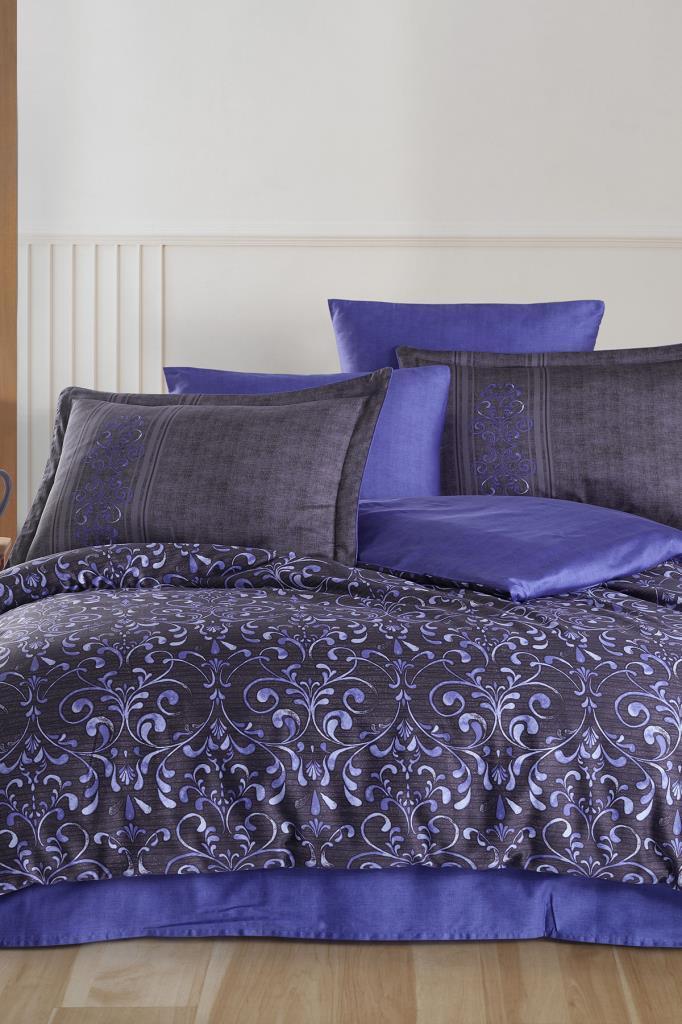 Gris Pamuk Saten Çift Kişilik Nevresim Takımı Lila