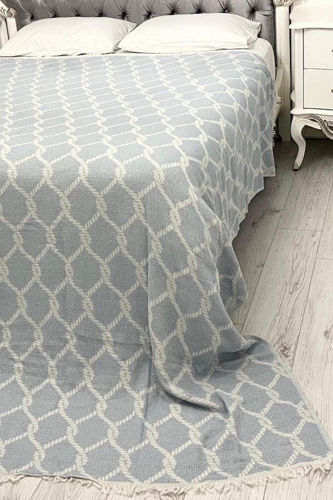 Halat Keten Çift Kişilik Saçaklı Tek Pike 220x240 Cm Mavi