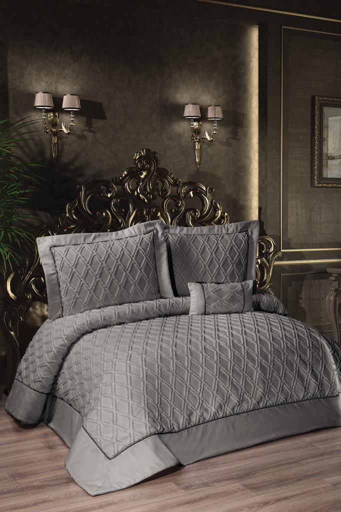 Harley Dolgulu Şönil Çift Kişilik Yatak Örtüsü Antrasit