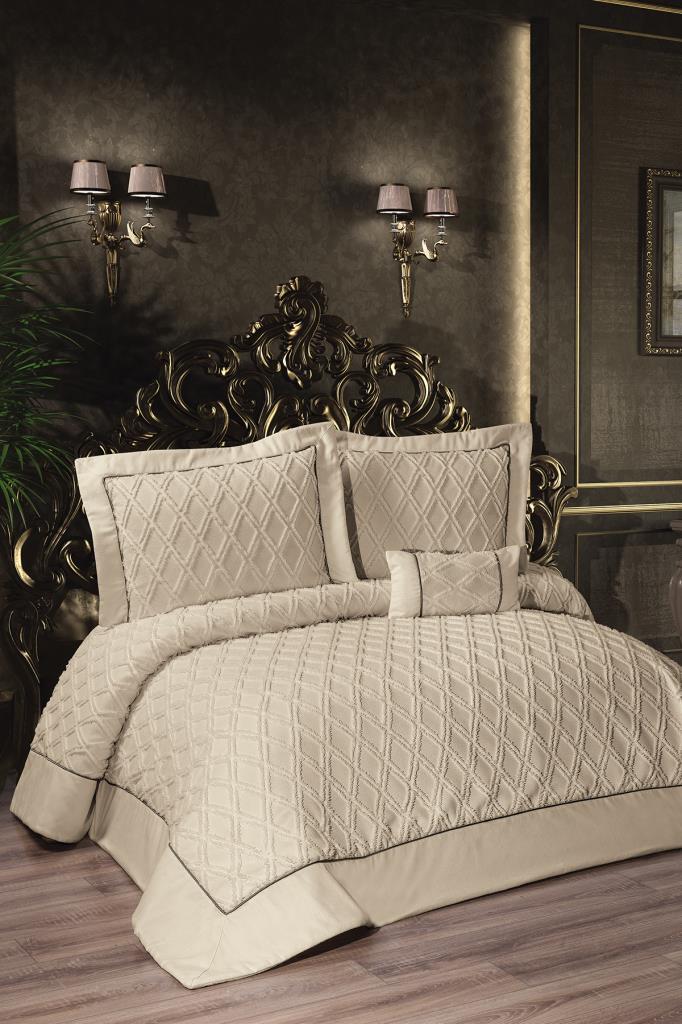 Harley Dolgulu Şönil Çift Kişilik Yatak Örtüsü Cappucino