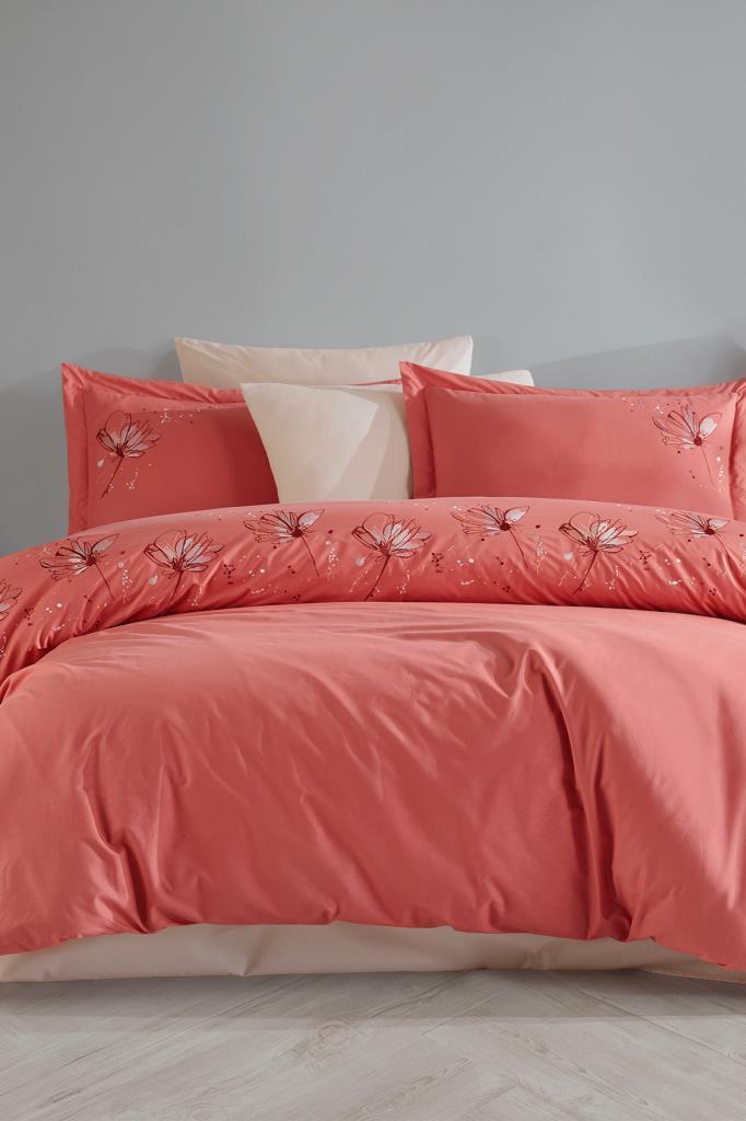 Heral Nakışlı %100 Pamuk Çift Kişilik Nevresim Takımı Kiremit